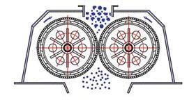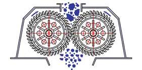 對輥破碎機(jī)也可以叫作輥式破碎機(jī)、雙輥破碎機(jī)、對輥式破碎機(jī),它是利用輥面的摩擦力將物料咬入破碎區(qū),使之承受擠壓或劈裂而破碎的機(jī)械。主要用于對物料的 細(xì)碎作業(yè)。當(dāng)用于粗碎或需要增大破碎比時,常在輥面上做出牙齒或溝槽以增大劈裂作用,這種破碎機(jī)叫作雙齒輥破碎機(jī)。當(dāng)需要更細(xì)成品,產(chǎn)量更大,破碎比更大 的設(shè)備時,要用到四輥破碎機(jī)。