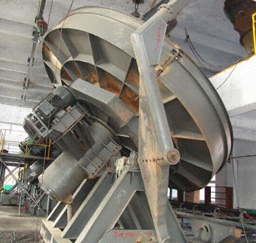 5)大盤由盤體和盤節組成。降低主電機功率。盤節沿盤體可上下調節。盤節端部為邊法蘭,料球出盤時可保證料球不被拉傷、撕裂。